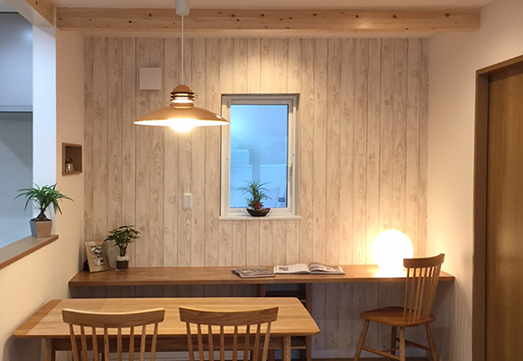 当社の断熱施工によって、中古住宅が真冬でもエアコン1台で家中が温かい家に生まれ変わりました。「アパート時代とはまったく違って快適ですね」とT様。「リビングワークさんにはなんでも相談できましたし、相談することは大事だなと思いました。壁紙ひとつでも、私たちには分からないプロの視線でアドバイスをもらえましたし、住んでみて正解でしたね」