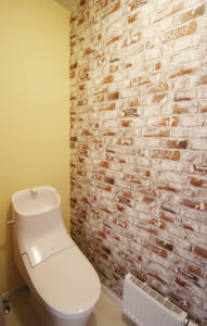 ご夫婦の寝室や2階のトイレは柄の壁紙も取り入れて、遊び心のあるインテリアに仕上がりました。